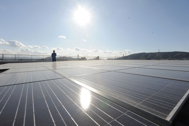 特殊な洗浄液でソーラーパネルの洗浄を行います。